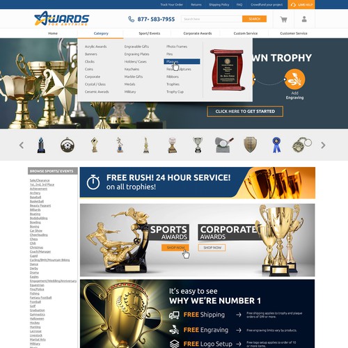 AwardsForAnything, Inc - Trophies - Awards - Sports - Corporate ... Ensure your year-end football award, soccer award or baseball award ceremony is memorable, contact Awards For Anything today at 1-877-583-7955.
